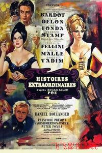 爱伦坡的三个故事,由三大导演分别诠释。费里尼的叫做《该死的托比》,讲斯坦普扮演一个演员,来到罗马参与一部西部风格的宗教片,演里面的耶稣。《罗马风情画》在这里初见端倪。马勒的片断叫做《威廉·威尔逊》,讲阿兰·德龙分饰两角,其中一个追杀另一个,而芭铎头戴黑色假发出...
